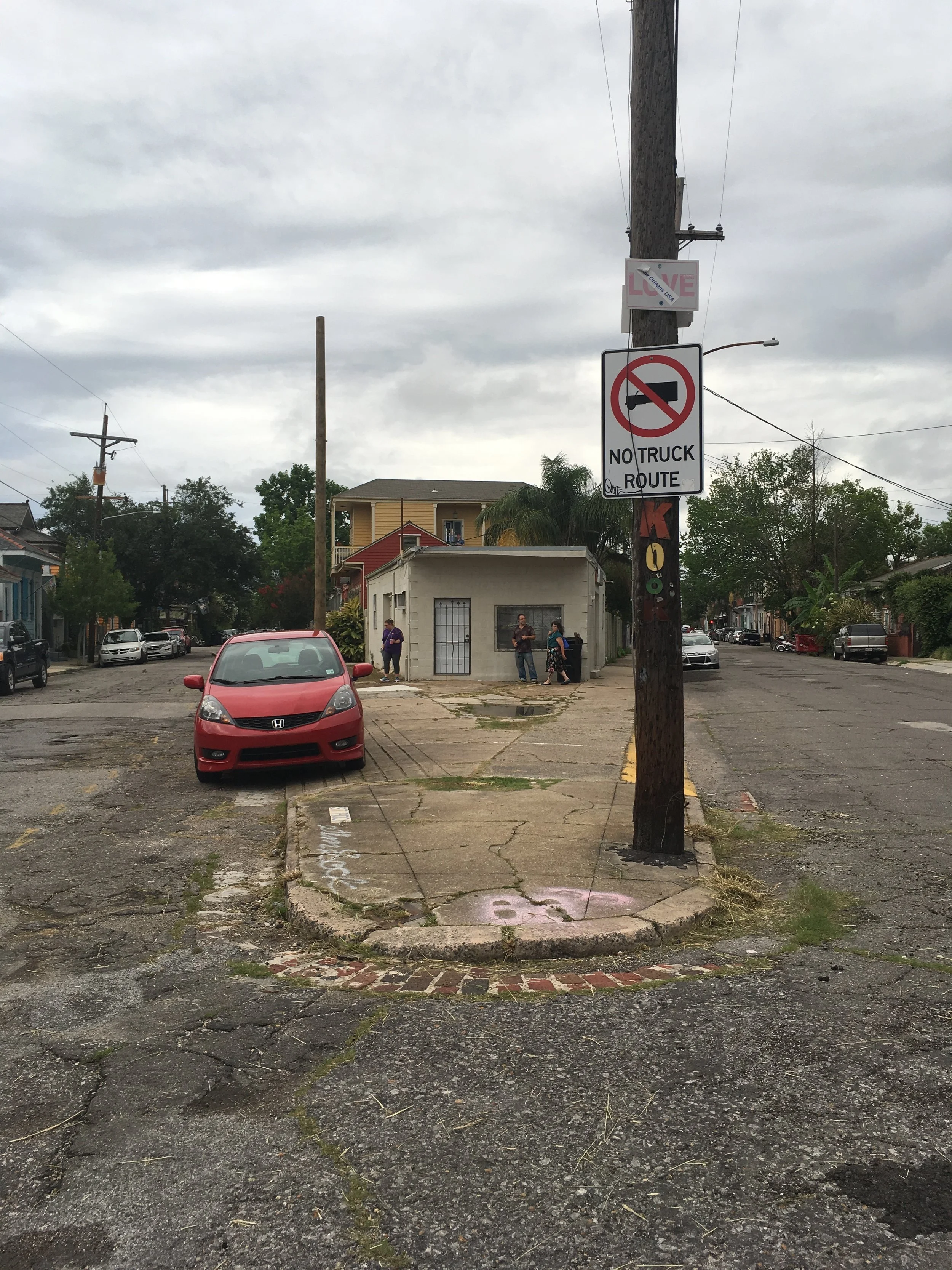 Looking down the arpent line, which follows the lines that use to divide French plantations in New Orleans.